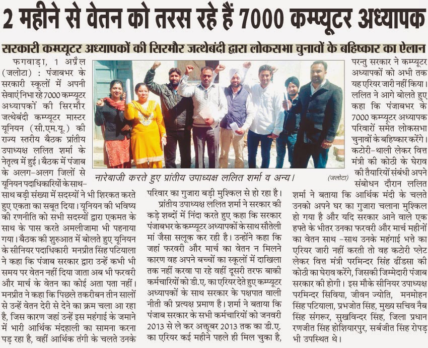ਅੱਜ ਸੀ.ਐਮ.ਯੂ. ਵੱਲੋਂ ਮੁੱਖ ਦਫਤਰ ਵਿਖੇ ਤਨਖਾਹ ਸਬੰਧੀ ਗੱਲਬਾਤ ਕੀਤੀ ਗਈ। ਉਹਨਾਂ ਦੱਸਿਆ ਕਿ ਹਾਲੇ ਤੱਕ ਉਹਨਾਂ ਕੋਲ ਡੀ.ਡੀ.ਓ. ਪਾਵਰਜ਼ ਨਹੀਂ ਆਈਆਂ ਹਨ, ਅਤੇ ਅੱਜ ਸ਼ਾਮ ਤੱਕ ਪਾਵਰਜ਼ ਆਉਣ ਦੀ ਉਮੀਦ ਹੈ। ਜੇਕਰ ਅੱਜ ਡੀਡੀਓ ਪਾਵਰਾਂ ਆ ਜਾਂਦੀਆਂ ਹਨ ਤਾਂ ਪਰਸੋਂ ਤੱਕ ਸੈਲਰੀ ਬਿਲ ਸਬਮਿਟ ਹੋ ਜਾਣਗੇ ..